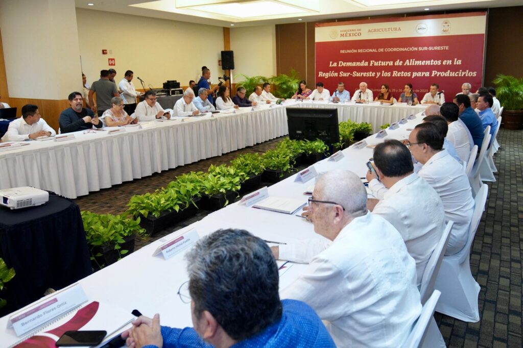 Acompañada del secretario de Agricultura y Desarrollo Rural del Gobierno de México (SADER) Víctor Villalobos Arámbula, Mara Lezama participó en esta reunión a la que asisten secretarios de desarrollo agropecuario de siete estados del Sur-Sureste: Campeche, Chiapas, Tabasco, Oaxaca, Quintana Roo, Veracruz y Yucatán, para dar continuidad a los acuerdos para fortalecer el desarrollo regional a partir de los resultados obtenidos en Ciudad Obregón, Sonora.
