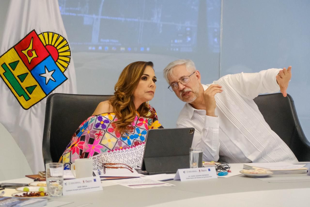 Cancún.– La gobernadora Mara Lezama Espinosa sostuvo un encuentro con el Comisario Europeo Josef Síkela y el secretario de cambio climático y desarrollo de SEMARNAT José Luis Samaniego Leyva, con el propósito de fortalecer los lazos de cooperación internacional en materia de economía circular y aprovechamiento sostenible del sargazo.