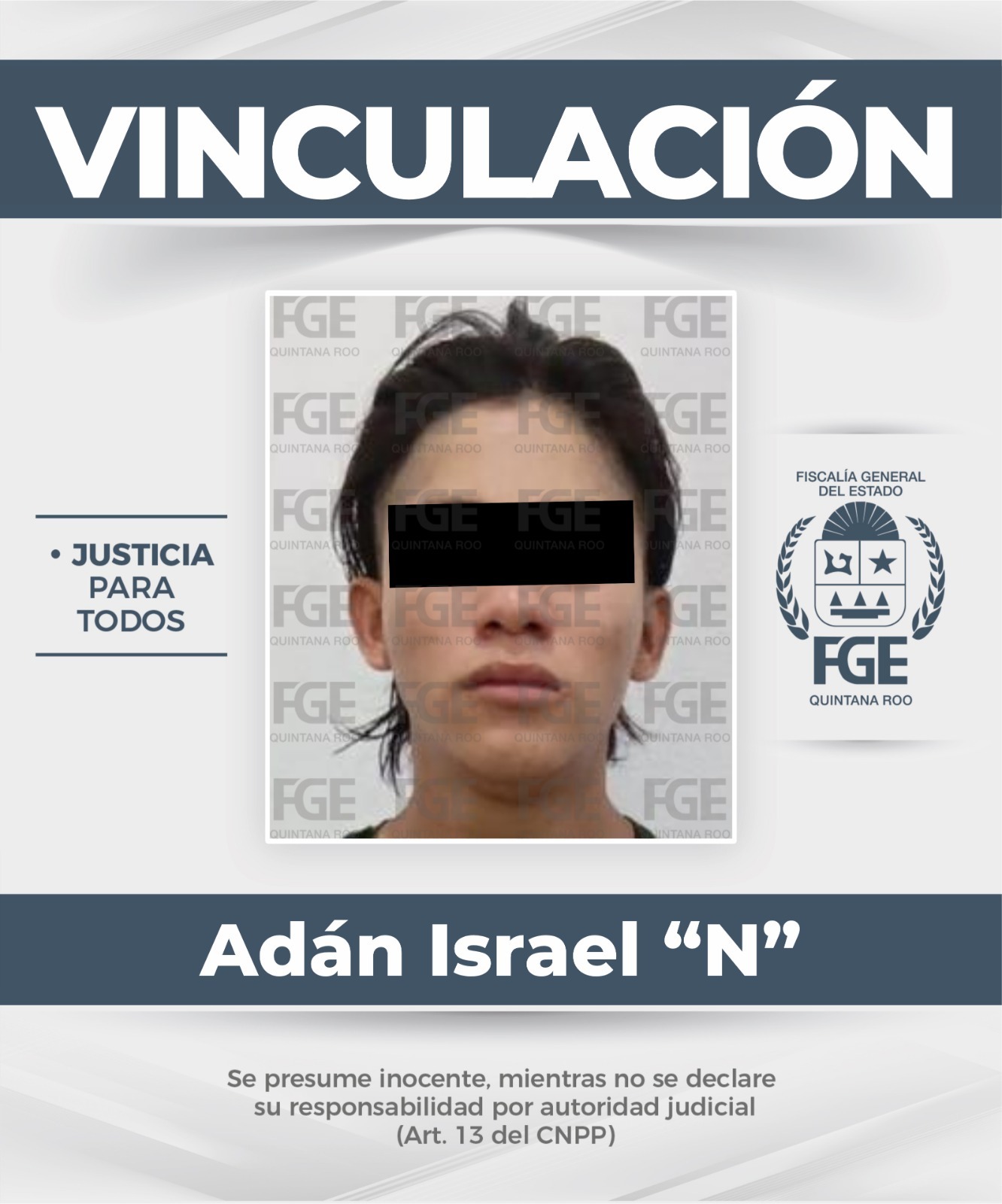Tras la denuncia de los hechos, elementos de la Policía de Investigación cumplimentaron una orden de aprehensión en contra de Adán Israel “N”. En audiencia, la autoridad judicial dictó auto de vinculación a proceso e impuso la medida cautelar de prisión preventiva, por el tiempo que dure el proceso judicial.