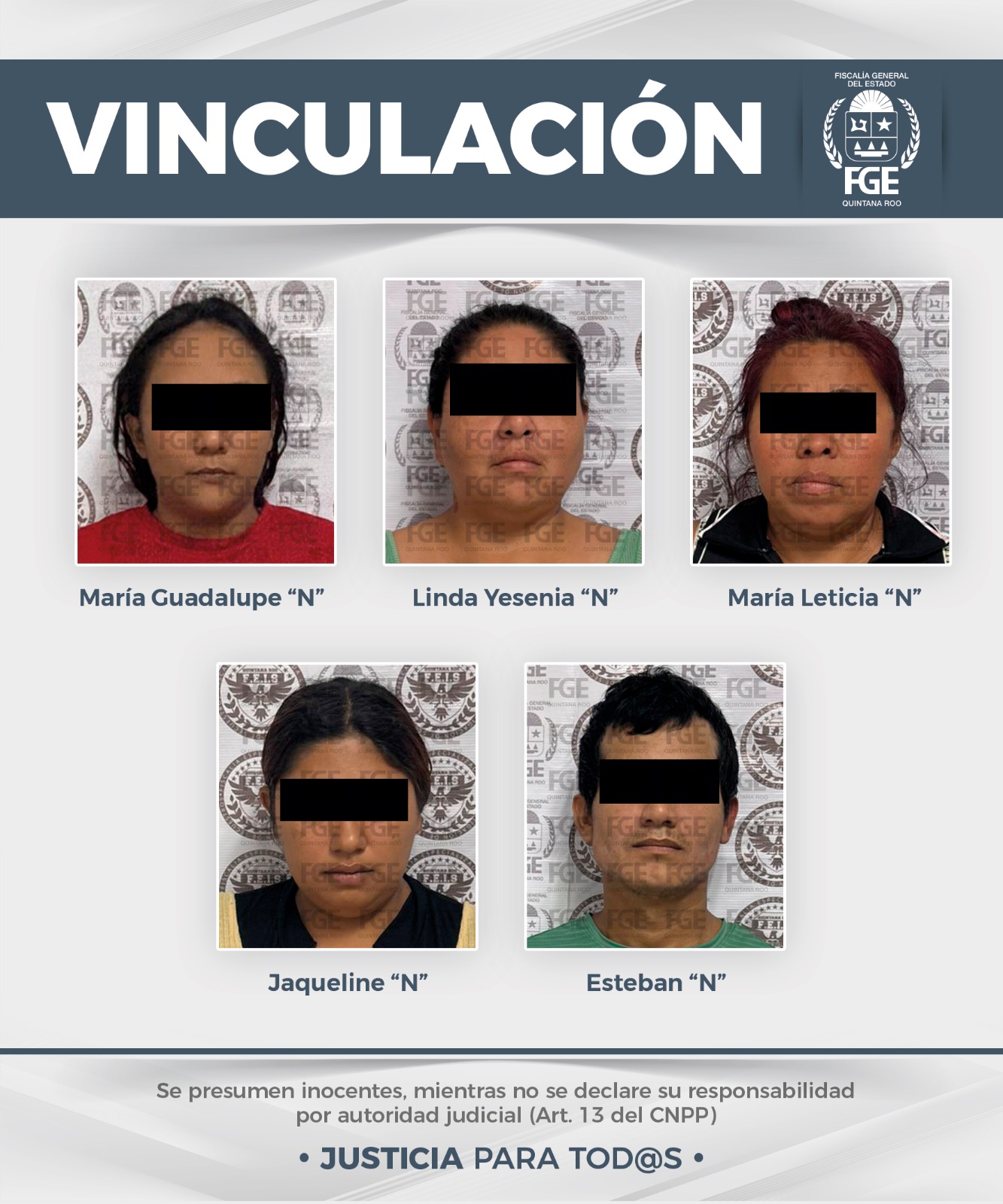 Benito Juárez.- La Fiscalía General del Estado informa que obtuvo de un Juez de Control la vinculación a proceso para cinco personas, cuatro mujeres y un hombre, por su probable participación en hechos posiblemente constitutivos del delito de privación ilegal de la libertad personal, en perjuicio de una víctima del sexo masculino de identidad reservada.
