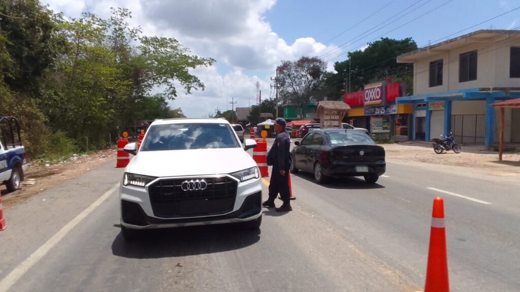Se continua con el filtro de inspección provisional preventivo instalado en el poblado de Muyil, en donde se trabaja en coadyuvancia con la policía municipal de Felipe Carrillo Puerto para realizar inspecciones a conductores y así detectar alguna situación que pudiera poner en riesgo a las y los habitantes.