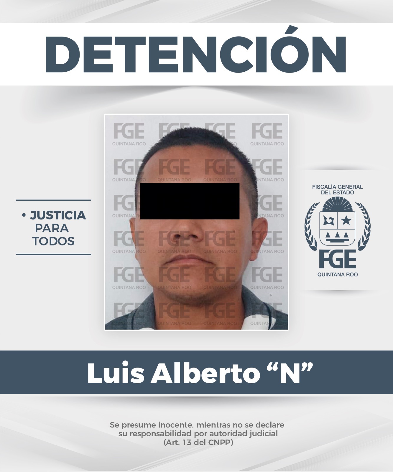 Benito Juárez.– La Fiscalía General del Estado informa que, en coordinación con elementos de la Policía Municipal, cumplimentó una orden de aprehensión en contra de Luis Alberto “N”, por su probable participación en hechos posiblemente constitutivos del delito de extorsión, en agravio de una víctima del sexo femenino, de identidad reservada.