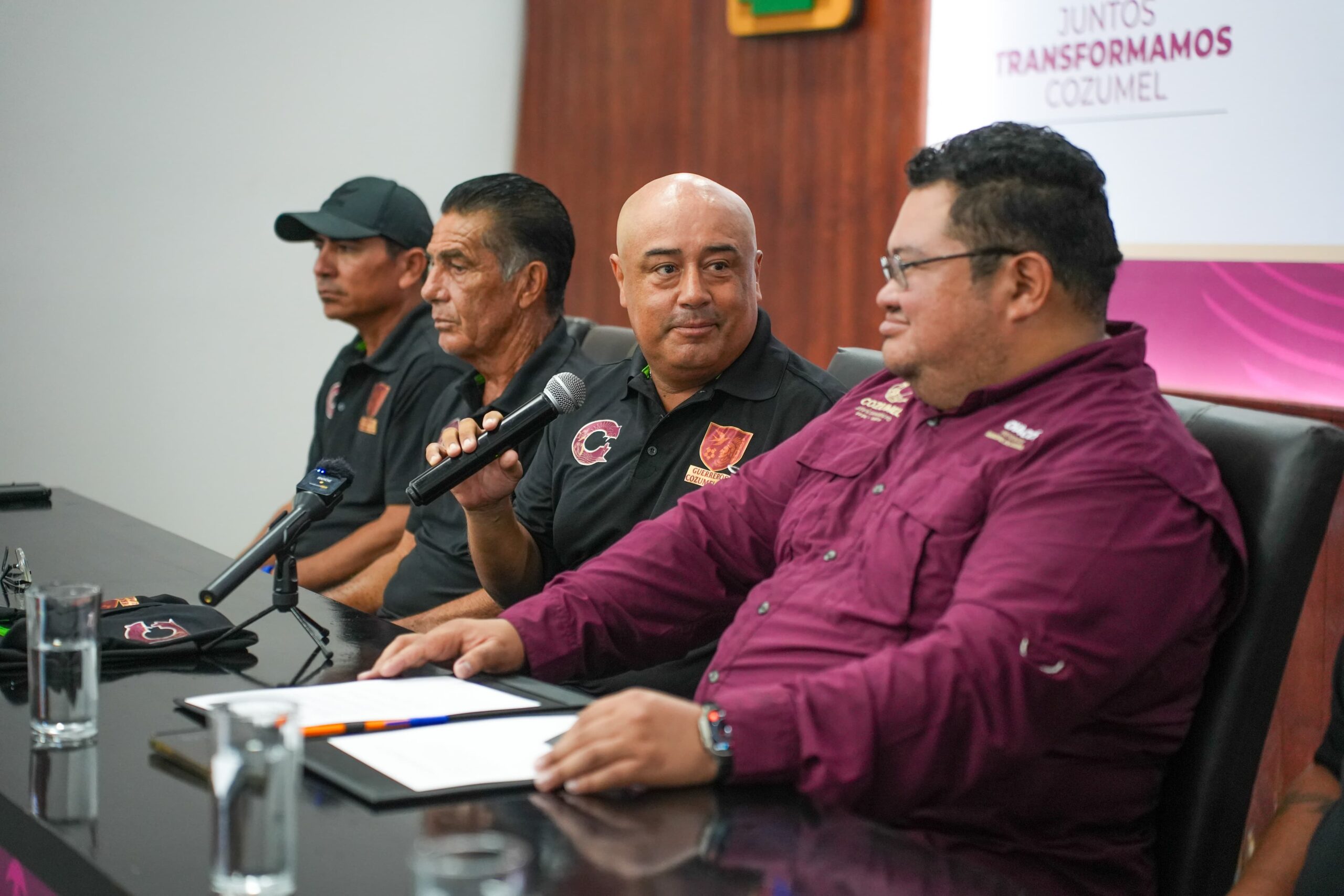 Cozumel, a 25 de julio de 2025.- El gobierno municipal que encabeza José Luis Chacón Méndez, junto al director deportivo del club, Manuel García Valdés, presentó en conferencia de prensa al cuerpo técnico del equipo de fútbol profesional de tercera división Guerreros Cozumel FC, como parte del compromiso de la administración actual con el fortalecimiento del deporte y el impulso a los equipos semiprofesionales.