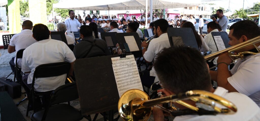 Durante el evento conmemorativo, el Coro y la Banda de Música del Estado interpretaron la pieza musical “Marcha a Juárez y la Constitución” así como los himnos a Quintana Roo y Nacional Mexicano. La banda de guerra y escolta de la Bandera Nacional Mexicana estuvieron integrados por elementos del Séptimo Regimiento de Caballería Motorizado, perteneciente a la 34 Zona Militar.