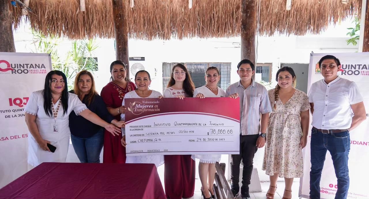 Chetumal. – El Instituto Quintanarroense de la Juventud (IQJ), recibió un cheque por parte del Voluntariado de “Mujeres en Transformación” los fondos recaudados en el Desayuno con Causa que impulsó esta asociación para apoyar a seguir mejorando y dignificando la Casa del Estudiante de Chetumal que habitan jóvenes que llegan de comunidades a la capital del estado para continuar sus estudios.