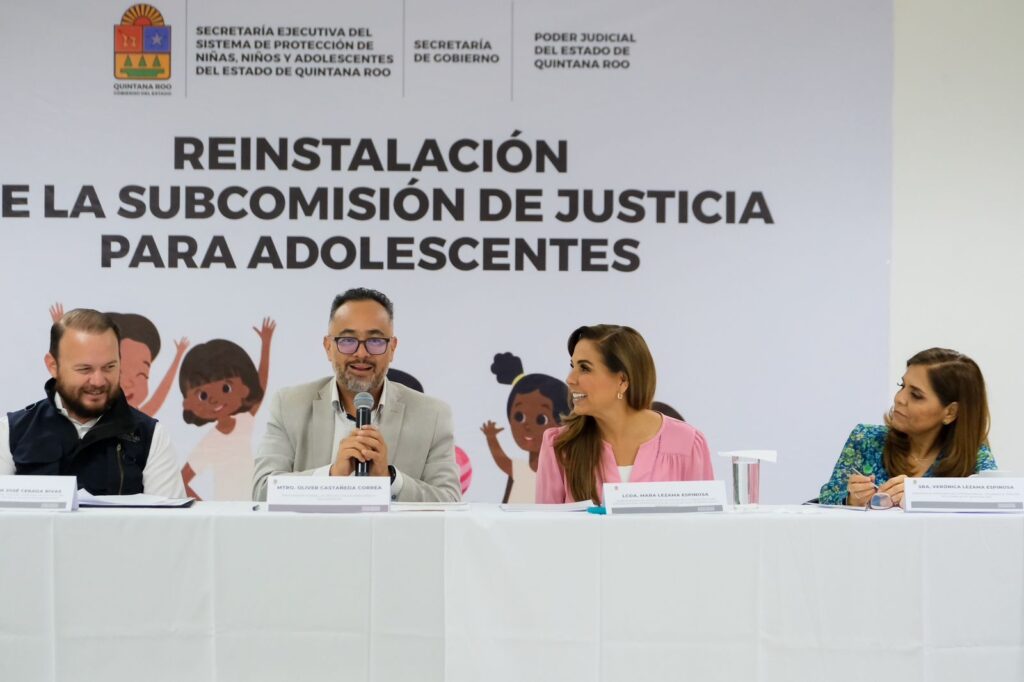 Cancún.- Con la presencia del Procurador Federal de Protección de Niñas, Niños y Adolescentes, Oliver Castañeda Correa, y de la Encargada de Despacho de la Secretaría Ejecutiva del Sistema Nacional de Protección de Niñas, Niños y Adolescentes (SIPINNA) María Constanza Tort San Román, la gobernadora Mara Lezama Espinosa participó en la reinstalación de la Subcomisión de Justicia para Adolescentes del Estado de Quintana Roo.