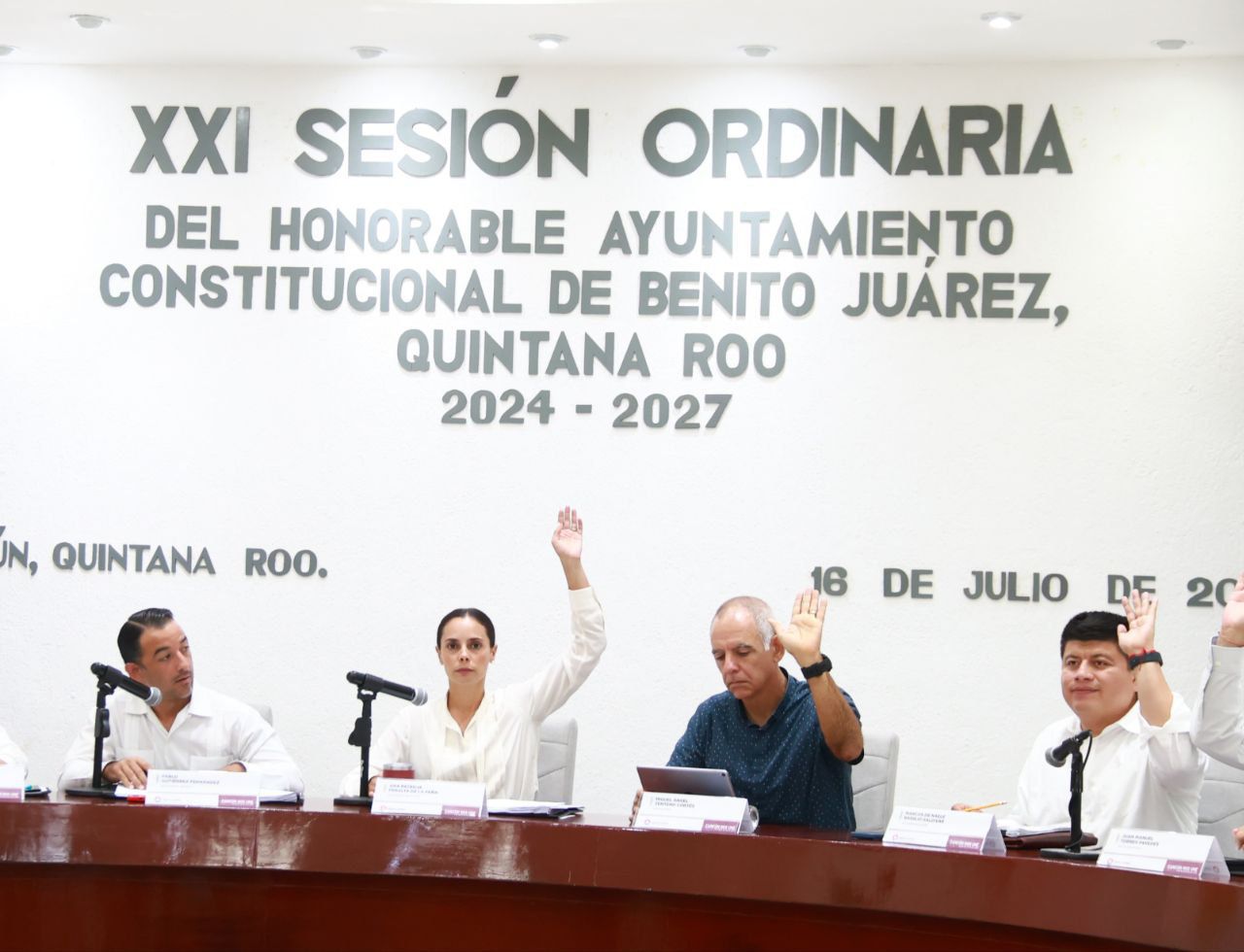Cancún, Q. R., a 16 de julio de 2025.- Durante la Vigésima Primera Sesión Ordinaria, encabezada por la Presidenta Municipal, Ana Paty Peralta, el Cabildo de Benito Juárez aprobó por unanimidad los 23 Programas que derivan del Plan Municipal de Desarrollo (PMD) 2024-2027, que fungirán como guía clara de trabajo para cada dependencia del Ayuntamiento.