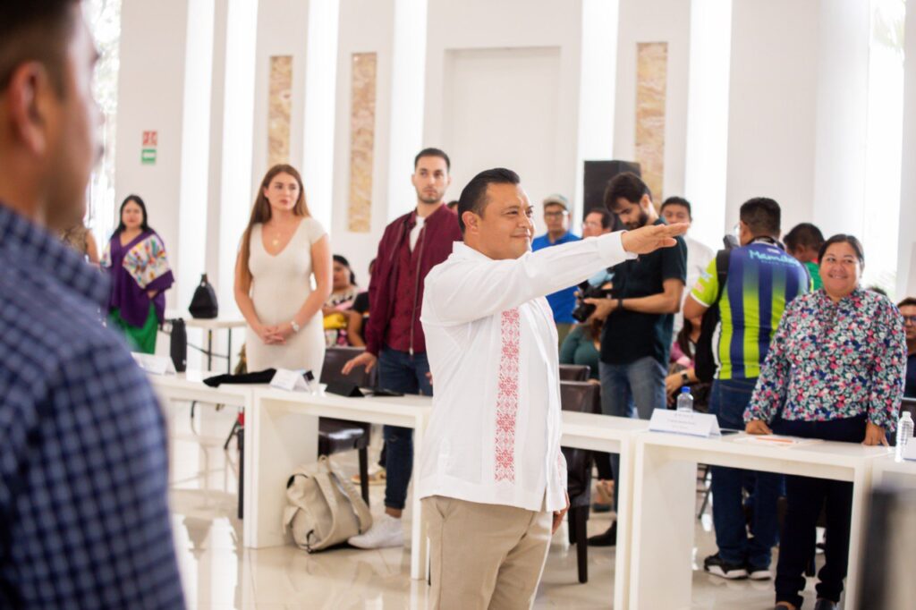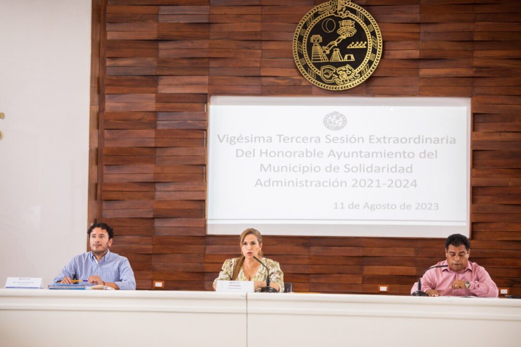 Playa del Carmen, Solidaridad, a 11 de agosto del 2023.- En la Vigésima Tercera Sesión Extraordinaria de Cabildo, la presidenta municipal Lili Campos tomó protesta a Cecilio Puc Sansores, como Secretario General del Ayuntamiento, y a Kira Iris San, como Tesorera Municipal.