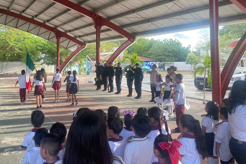 Elementos de la Secretaría de Seguridad Ciudadana, adscritos al área de Vinculación con Instancias, llevaron a cabo el programa Escuela Segura en la región 221 del municipio de Benito Juárez, en la primaria Armada de México.