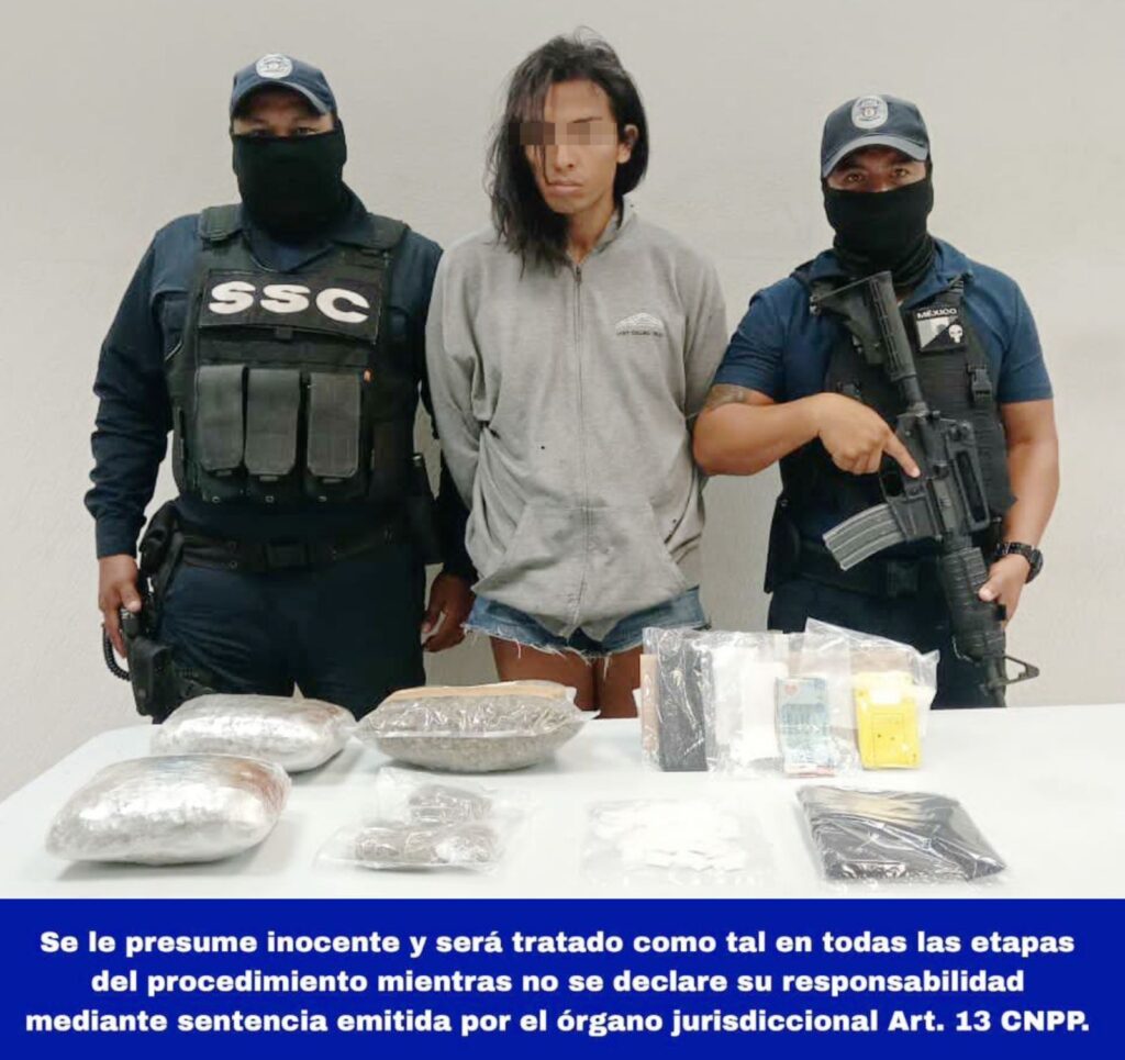 El detenido fue trasladado a la Fiscalía Especializada en Combate al Delito de Narcomenudeo para su puesta a disposición.