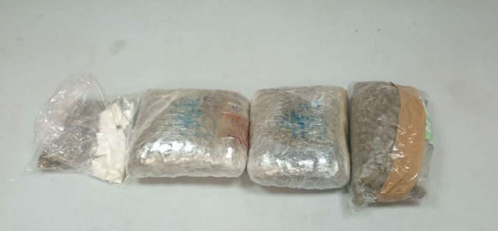 Los hechos ocurrieron sobre la calle de terracería de la colonia la Veleta del municipio de Tulum, en donde se procedió a la inspección correspondiente en la que se le decomisaron: tres bolsitas de plástico transparentes con hierba seca color verde con las características similares a la marihuana, tres paquetes envueltos en plástico transparente con este mismo narcótico, 63 bolsitas de plástico trasparentes con polvo de color blanco con las características similares a la cocaína.