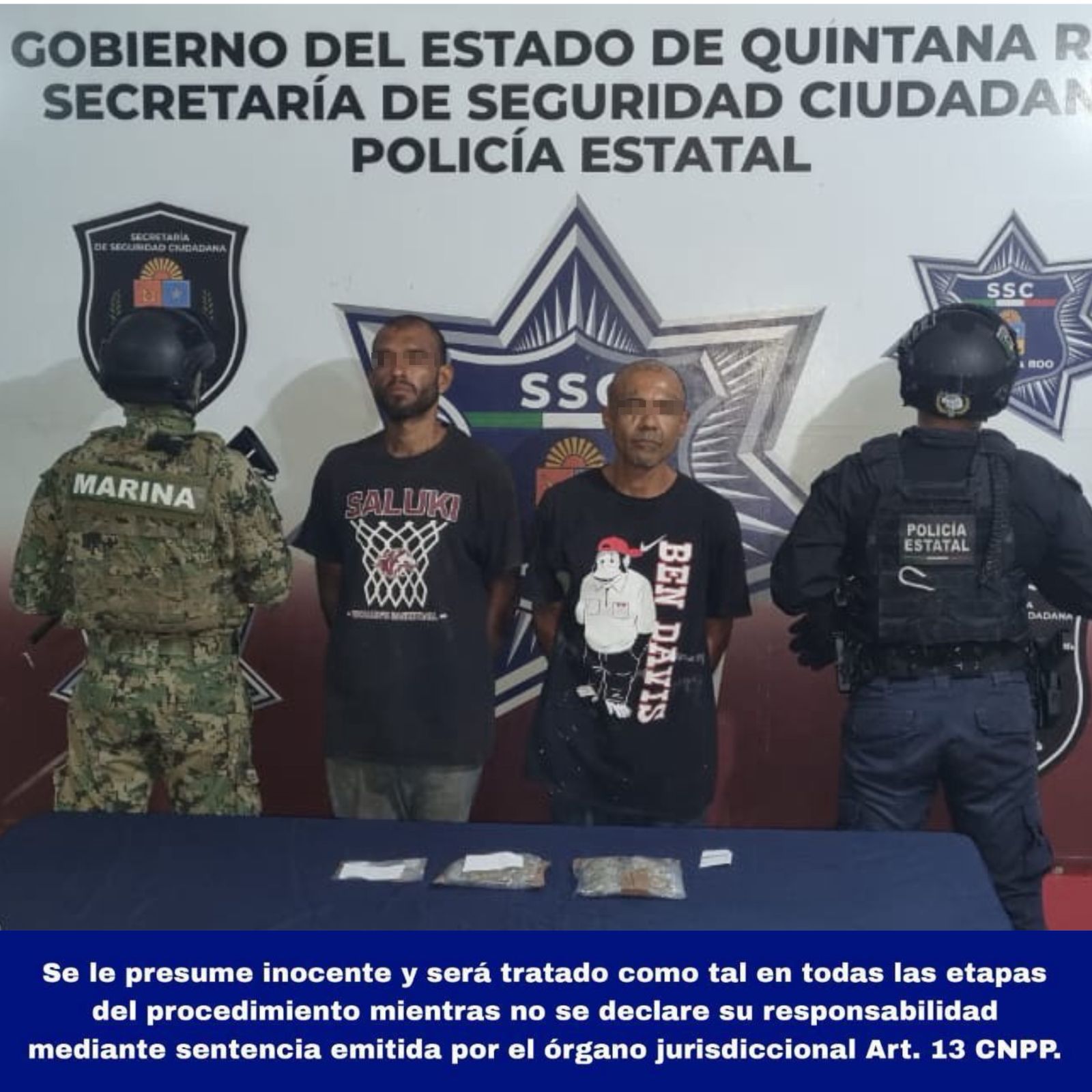 Elementos de la Secretaría de Seguridad Ciudadana, en coordinación con la Secretaría de Marina, en trabajos de vigilancia; se percataron de dos masculinos intercambiando diversas bolsitas de plástico transparente que en su interior contenían vegetal verde con las características similares a la marihuana.