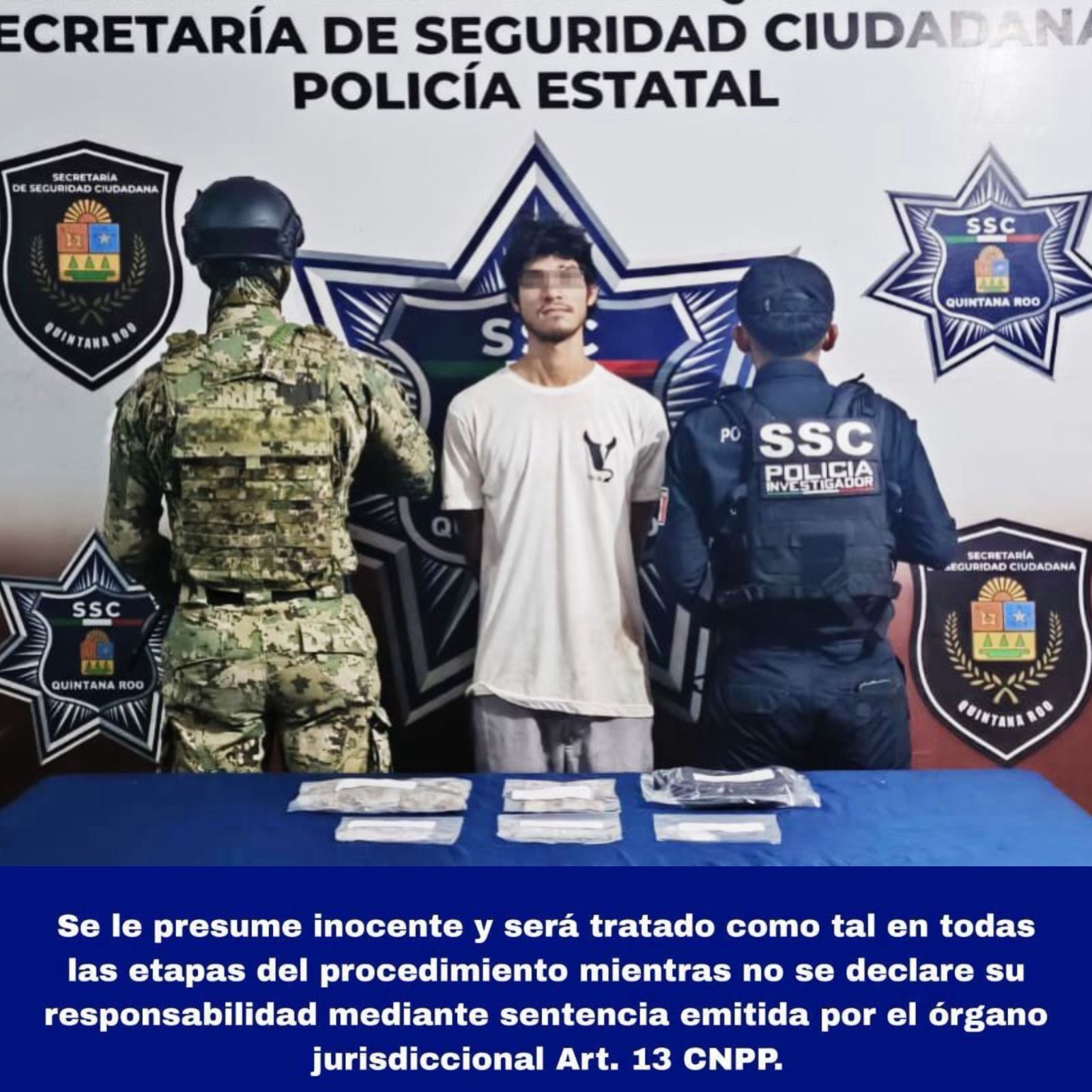 Elementos del Grupo de Investigación, de la Secretaría de Seguridad Ciudadana, en coordinación con la Secretaría de Marina, se percataron de un masculino quien estaba manipulando con ambas manos unas bolsitas de plástico que contenían vegetal de color verde con las características similares a la droga comúnmente conocida como marihuana.