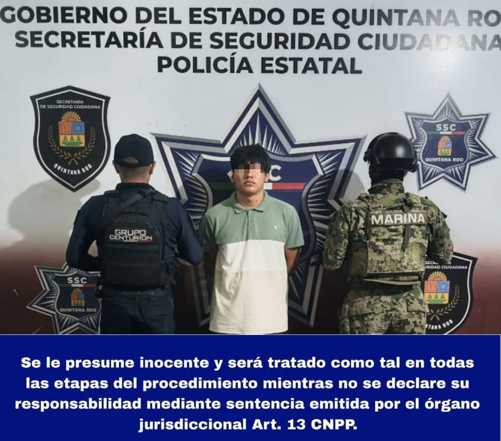 Posteriormente, el sujeto corrió y trepó un portón de metal. Los hechos ocurrieron sobre la calle San Martín Caballero, entre calle Sin Nombre y calle Sin Nombre, manzana 14, lote 01, supermanzana 243, colonia El Cedro Rancho Viejo, en el municipio de Benito Juárez; lugar en el que el individuo cayó del portón y accionó su arma por segunda ocasión. Ante ello, uno de los oficiales brincó la barda y aseguró al masculino para la revisión correspondiente.