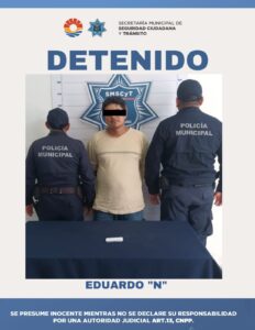 Al notar la presencia policial, dicho individuo abordó el vehículo para huir del lugar, por lo que de manera inmediata fue interceptado sobre la avenida Xel-Há, entre calle Nance y calle Grosella, supermanzana 28, manzana 5, del municipio de Benito Juárez, donde se realizó la inspección correspondiente.
