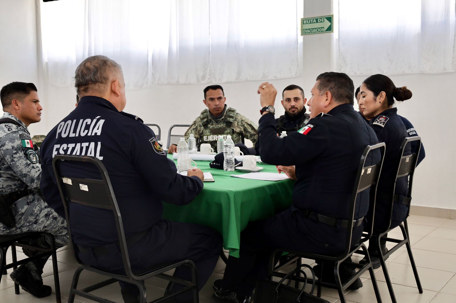 Como parte de la agenda del día, en primera instancia, se tuvo una reunión de trabajo entre elementos de la Secretaría de Marina, de la Secretaría de la Defensa Nacional, de la Guardia Nacional, policia estatal y de la policía municipal para intercambiar experiencias y establecer acuerdos a favor de la seguridad y la construcción de paz.