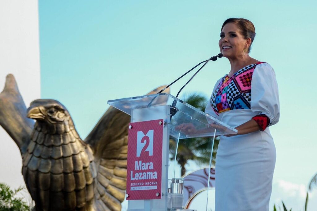 Chetumal.- Al rendir el Segundo Informe de Gobierno frente al pueblo, la gobernadora de Quintana Roo, Mara Lezama Espinosa, aseguró que con el trabajo de todas y todos y sumando esfuerzos en un Nuevo Acuerdo, en dos años “un gobierno humanista con corazón feminista ha sentado las bases de la transformación, una transformación que está en marcha y no tiene vuelta atrás”.