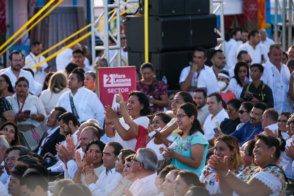 Mara Lezama destinó palabras especiales para el presidente Andrés Manuel López Obrador reconociendo su liderazgo firme y decidido en la construcción del primer piso, que continuará la presidenta electa Claudia Sheinbaum, con renovado vigor y determinación. “Quintana Roo debe acompañar este proceso e iniciar una Nueva Era de Transformación con la misma energía”, afirmó.