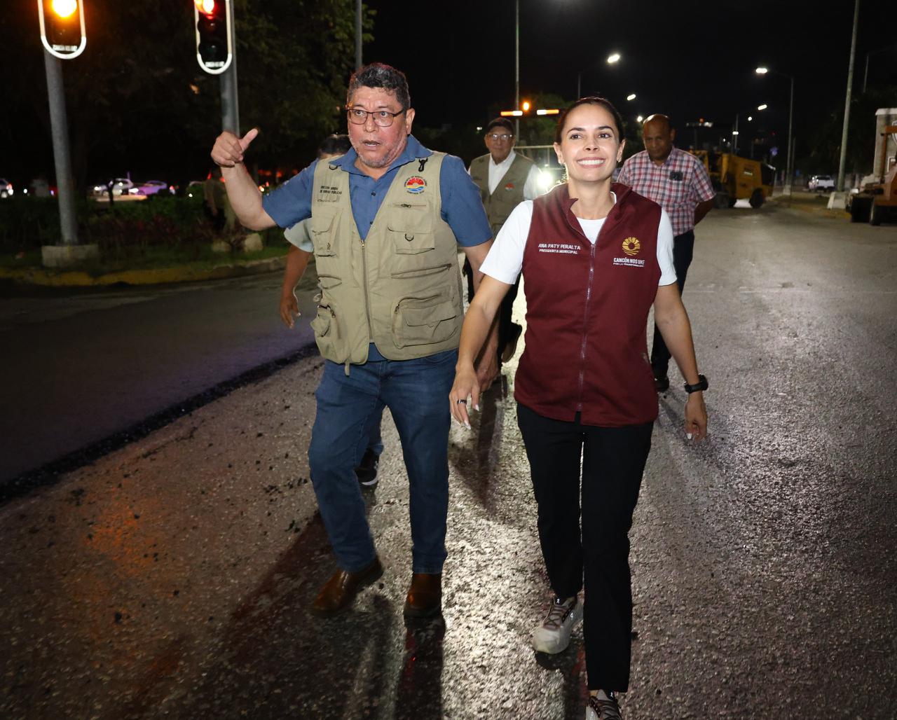 Durante la visita, la Alcaldesa destacó que esta intervención, a cargo de la Secretaría Municipal de Obras Públicas y Servicios, contempla una longitud total de más de seis kilómetros, desde la avenida Nichupté hasta el Arco Vial, dividida en dos tramos estratégicos para optimizar los trabajos y reducir afectaciones a la movilidad.