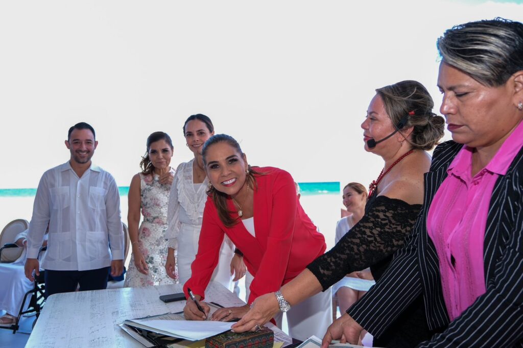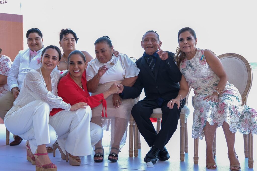 “Me siento muy feliz de participar con todas y todos ustedes y ser testigo de este paso tan importante que dan como lo es unir formalmente sus vidas a partir de estas bodas” explicó la gobernadora Mara Lezama al destacar que la familia es necesaria para construir una mejor sociedad, donde los hijos puedan llenarse de amor, acceder a principios y valores, y a tener un mejor futuro.