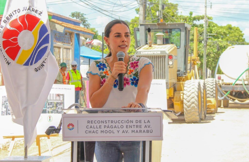 Cancún, Q. R., a 11 de agosto de 2023.- “Que el éxito turístico llegue a las colonias”, dijo la Presidenta Municipal, Ana Paty Peralta, al dar de manera formal el banderazo de inicio de los trabajos de reconstrucción de la calle Págalo entre Av. Chac Mool y Av. Marabú, junto a autoridades del Ayuntamiento de Benito Juárez y vecinos de la Supermanzana 253, en donde se emplearán más de 15 millones de pesos para dignificar la vialidad y beneficiar a más de 14 mil habitantes de la zona.